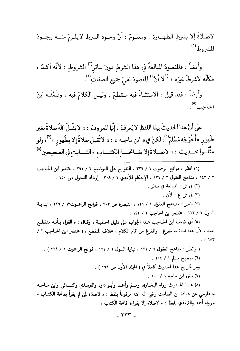 "وانظر: مناهج العقول 2/121، نهاية السول 2/124، فواتح الرحموت 1/329".