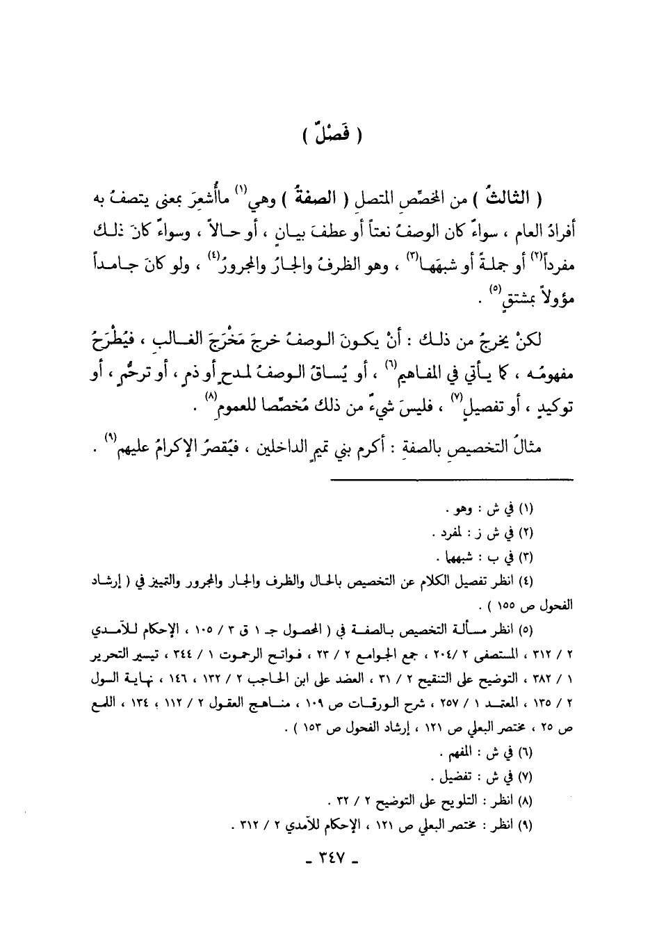 4 انظر: تفصيل الكلام عن التخصيص بالحال والظرف والجار والمجرور والتمييز في "إرشاد الفحول ص 155"