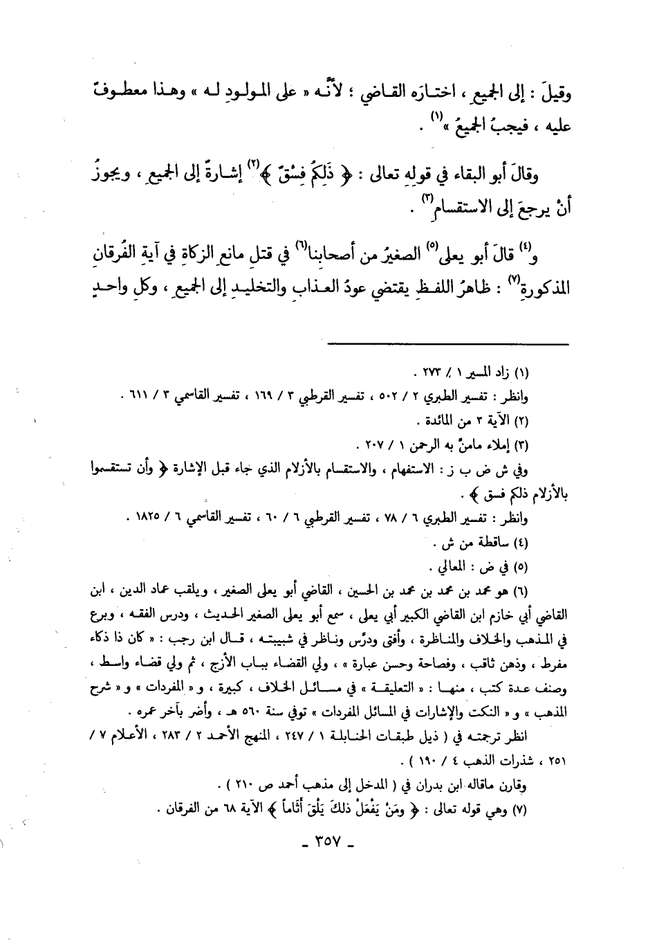 وَ4قَالَ أَبُو يَعْلَى5 الصَّغِيرُ مِنْ أَصْحَابِنَا6 فِي قَتْلِ مَانِعِ الزَّكَاةِ فِي آيَةِ الْفُرْقَانِ الْمَذْكُورَةِ7: ظَاهِرُ اللَّفْظِ يَقْتَضِي عَوْدَ الْعَذَابِ وَالتَّخْلِيدَ إلَى الْجَمِيعِ, وَكُلُّ وَاحِدٍ