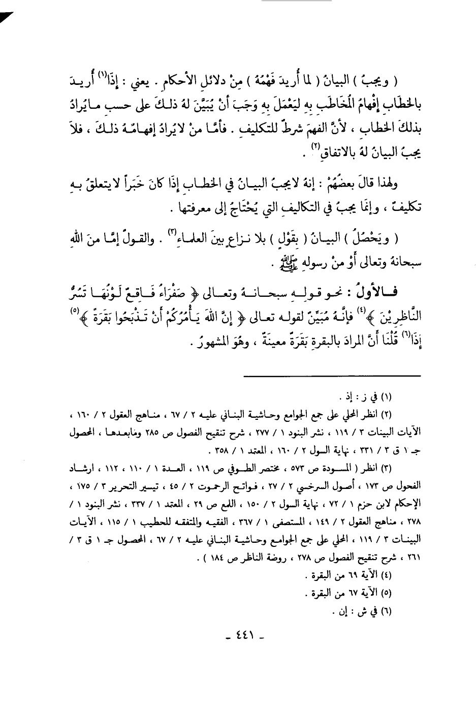 2 انظر المحلي على جمع الجوامع وحاشية البناني عليه 2/67، مناهج العقول 2/160، الآيات البينات 3/119، نشر البنود 1/277، شرح تنقيح الفصول ص285، وما بعدها، المحصول?1ق3/ 331، نهاية السول 2/160، المعتمد 1/358.