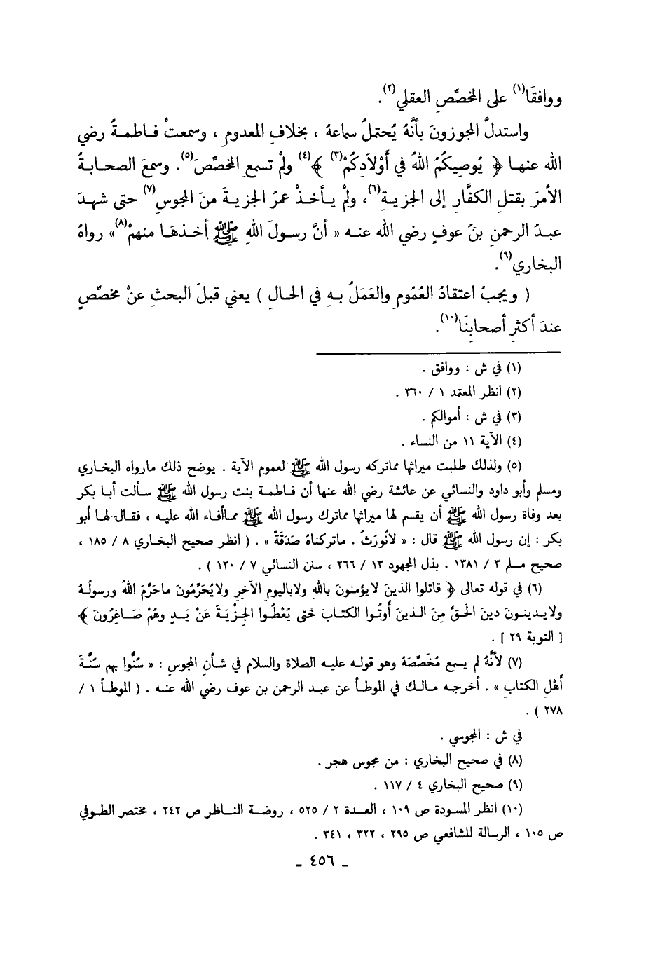 10 انظر المسودة ص109، العدة 2/525، روضة الناظر ص242، مختصر الطوفي ص105ن الرسالة للشافعي ص295، 322، 341.