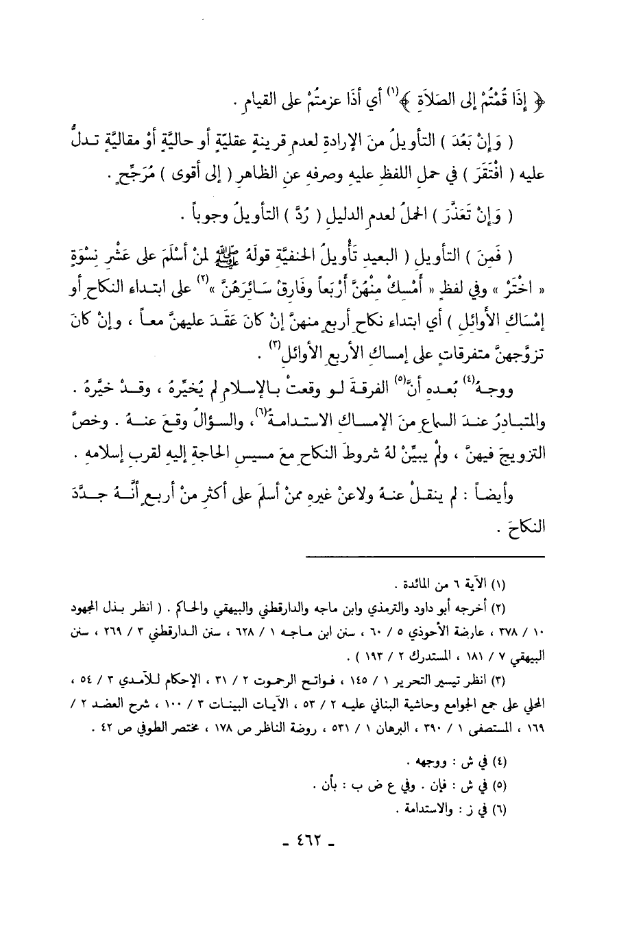 "فَمِنْ" التَّأْوِيلِ "الْبَعِيدِ تَأْوِيلُ الْحَنَفِيَّةِ قَوْلَهُ صَلَّى اللَّهُ عَلَيْهِ وَسَلَّمَ لِمَنْ أَسْلَمَ عَلَى عَشْرِ نِسْوَةٍ "اخْتَرْ" وَفِي لَفْظٍ: "أَمْسِكْ مِنْهُنَّ أَرْبَعًا وَفَارِقْ سَائِرَهُنَّ" 2 عَلَى ابْتِدَاءِ النِّكَاحِ، أَوْ إمْسَاكِ الأَوَائِلِ" أَيْ ابْتِدَاءِ نِكَاحِ أَرْبَعٍ مِنْهُنَّ إنْ كَانَ عَقَدَ عَلَيْهِنَّ مَعًا، وَإِنْ كَانَ تَزَوَّجَهُنَّ مُتَفَرِّقَاتٍ عَلَى إمْسَاكِ الأَرْبَعِ الأَوَائِلِ3.