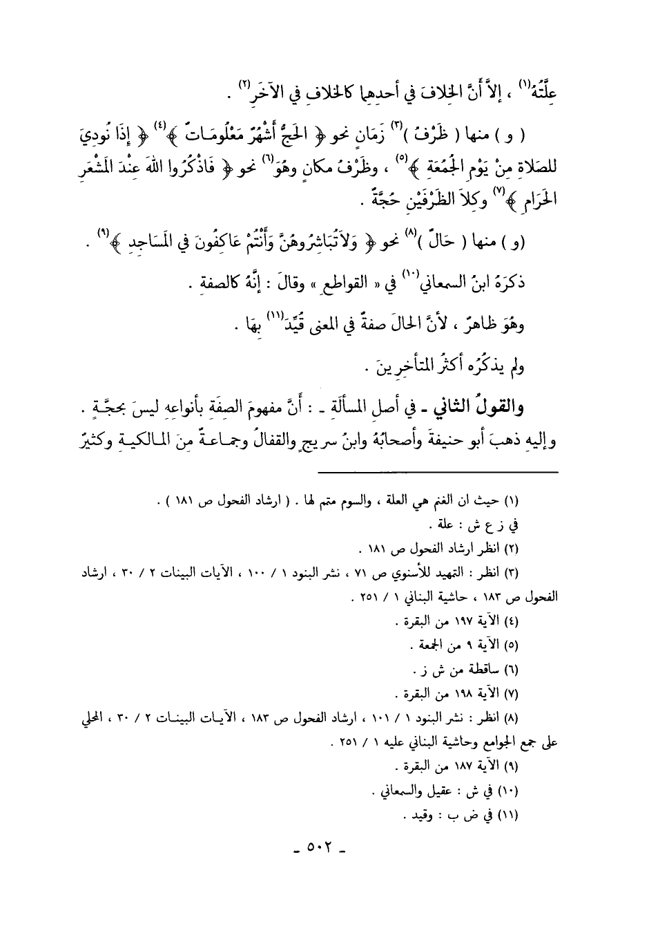 8 انظر: نشر البنود 1/101، إرشاد الفحول ص183، الآيات البينات 2/30، المحلي على جمع الجوامع وحاشية البناني عليه 1/251.