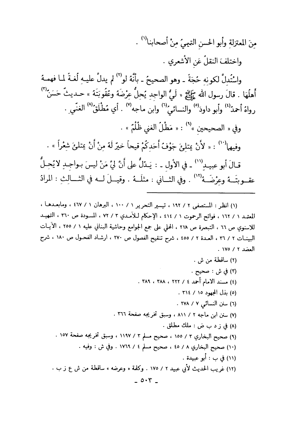 قَالَ أَبُو عُبَيْدٍ11 فِي الأَوَّلِ: يَدُلُّ عَلَى أَنَّ لَيَّ مَنْ لَيْسَ بِوَاجِدٍ لا يُحِلُّ عُقُوبَتَهُ وَعِرْضَهُ12 وَفِي الثَّانِي مِثْلُهُ، وَقِيلَ لَهُ فِي الثَّالِثِ: الْمُرَادُ