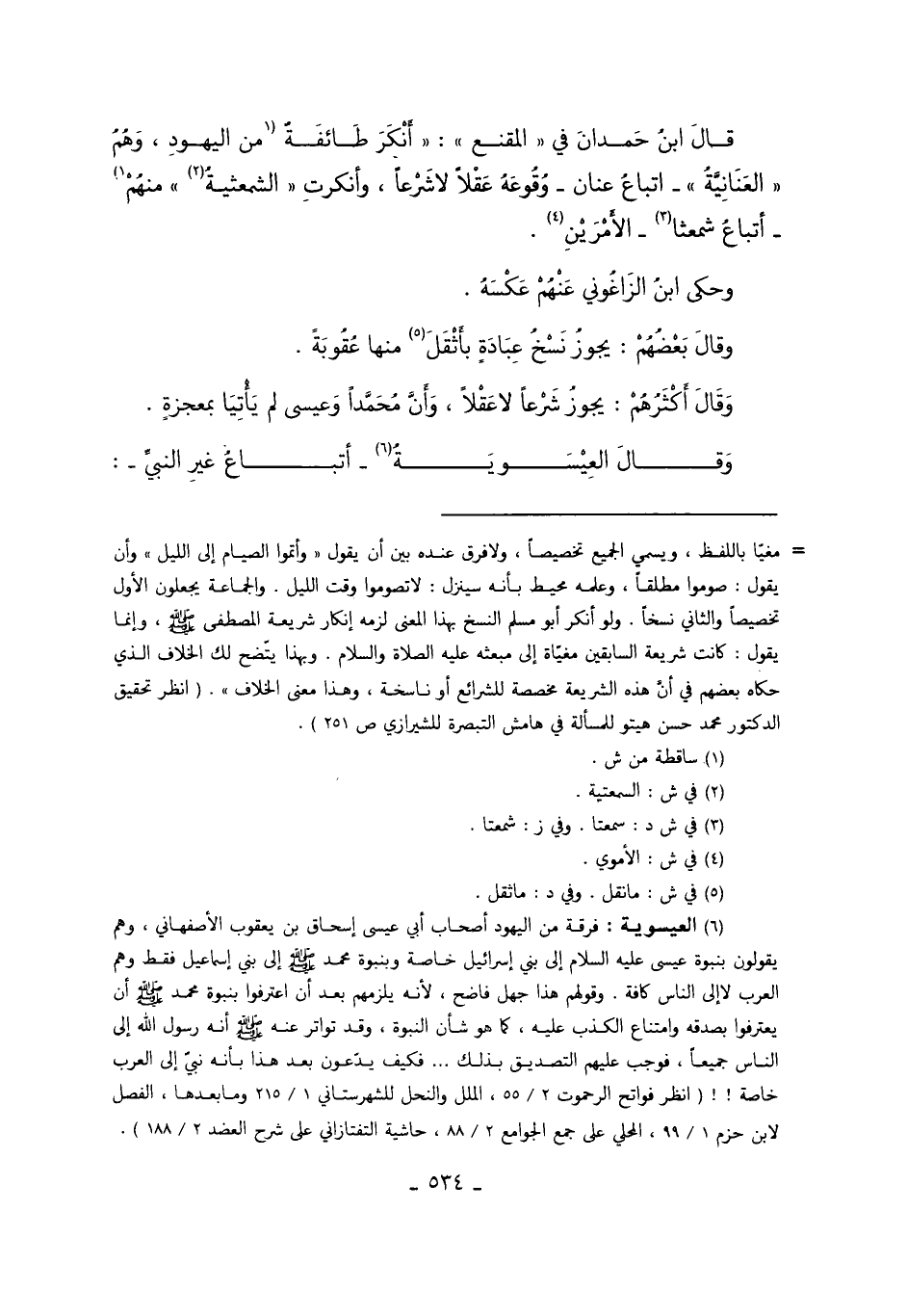 وَقَالَ الْعِيسَوِيَّةُ6 -أَتْبَاعُ غَيْرِ النَّبِيِّ-: