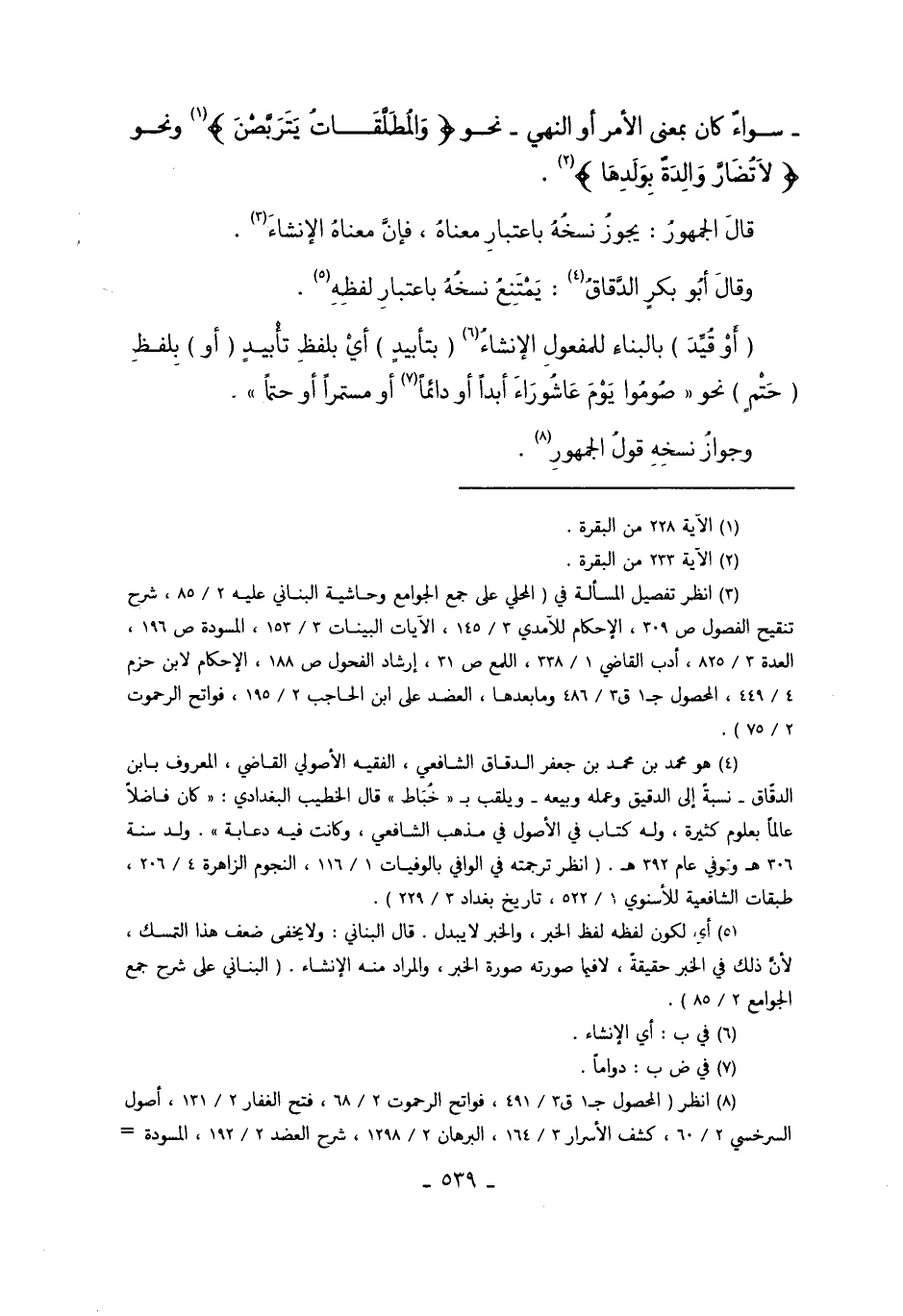 8 انظر "المحصول ج1ق3/491، فواتح الرحموت 2/68، فتح الغفار 2/131، أصول السرخسي 2/60، كشف الأسرار 3/164، البرهان 2/1298، شرح العضد 2/192، المسودة ص195، أدب القاضي 1/338، شرح تنقيح الفصول ص310، الإحكام للآمدي 3/134، التبصرة ص255، حاشية البناني 2/85، الآيات البينات 3/153، التلويح على التوضيح 2/33، إرشاد الفحول ص186، المعتمد للبصري 1/413".