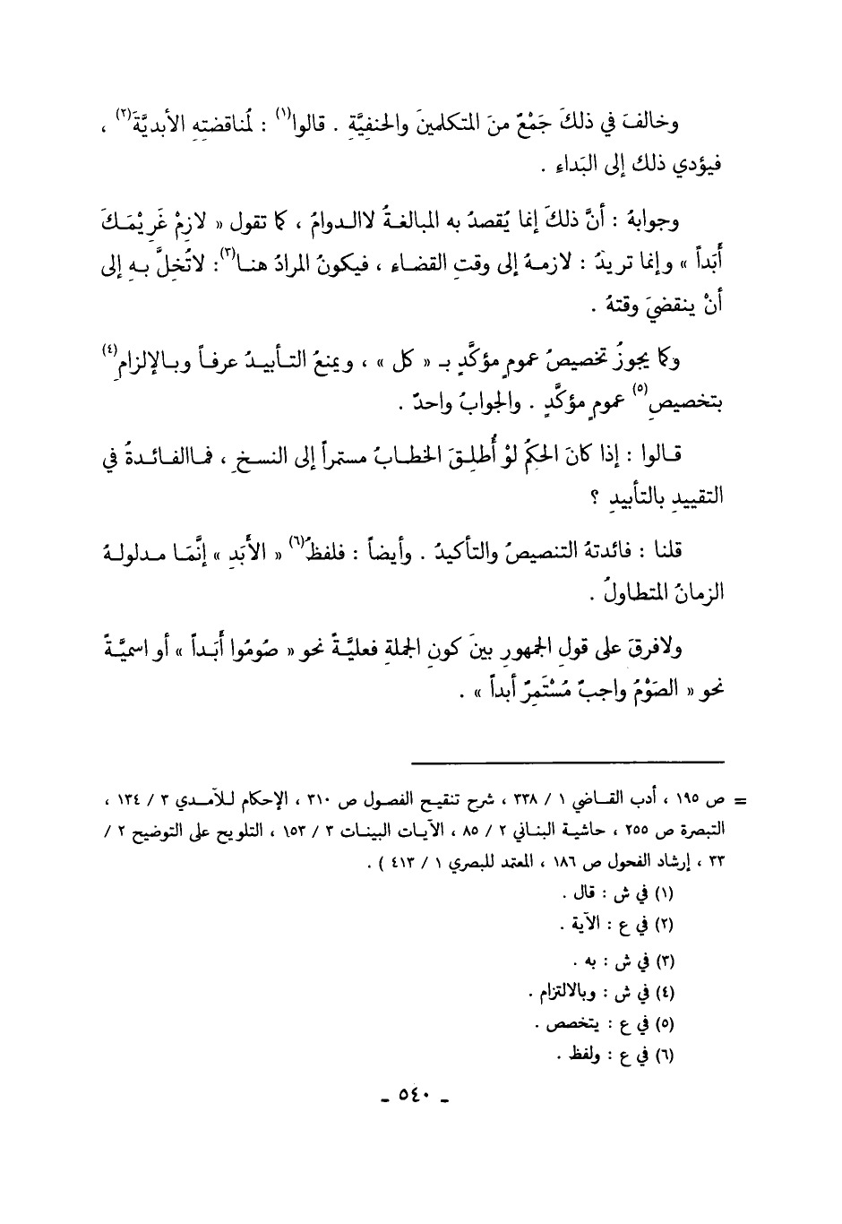 قُلْنَا: فَائِدَتُهُ التَّنْصِيصُ وَالتَّأْكِيدُ، وَأَيْضًا فَلَفْظُ6 "الأَبَدِ" إنَّمَا مَدْلُولُهُ الزَّمَانُ الْمُتَطَاوِلُ.