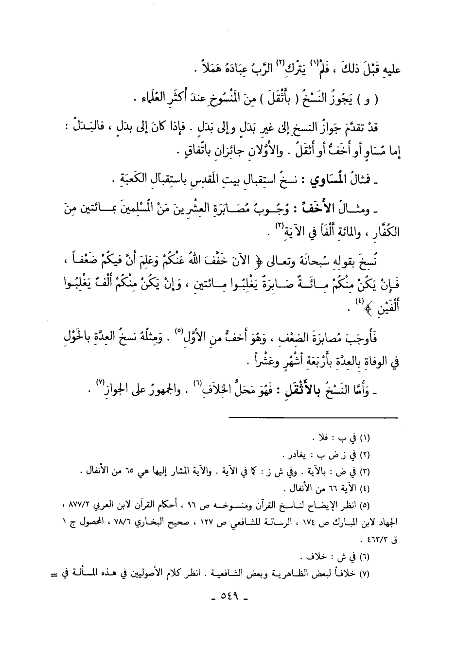 5 انظر الإيضاح لناسخ القران ومنسوخه ص96، أحكام القران لابن العربي 2/877، الجهاد لابن المبارك ص174، الرسالة للشافعي ص127، صحيح البخاري 6/78، المحصول ج1 ق3/463.