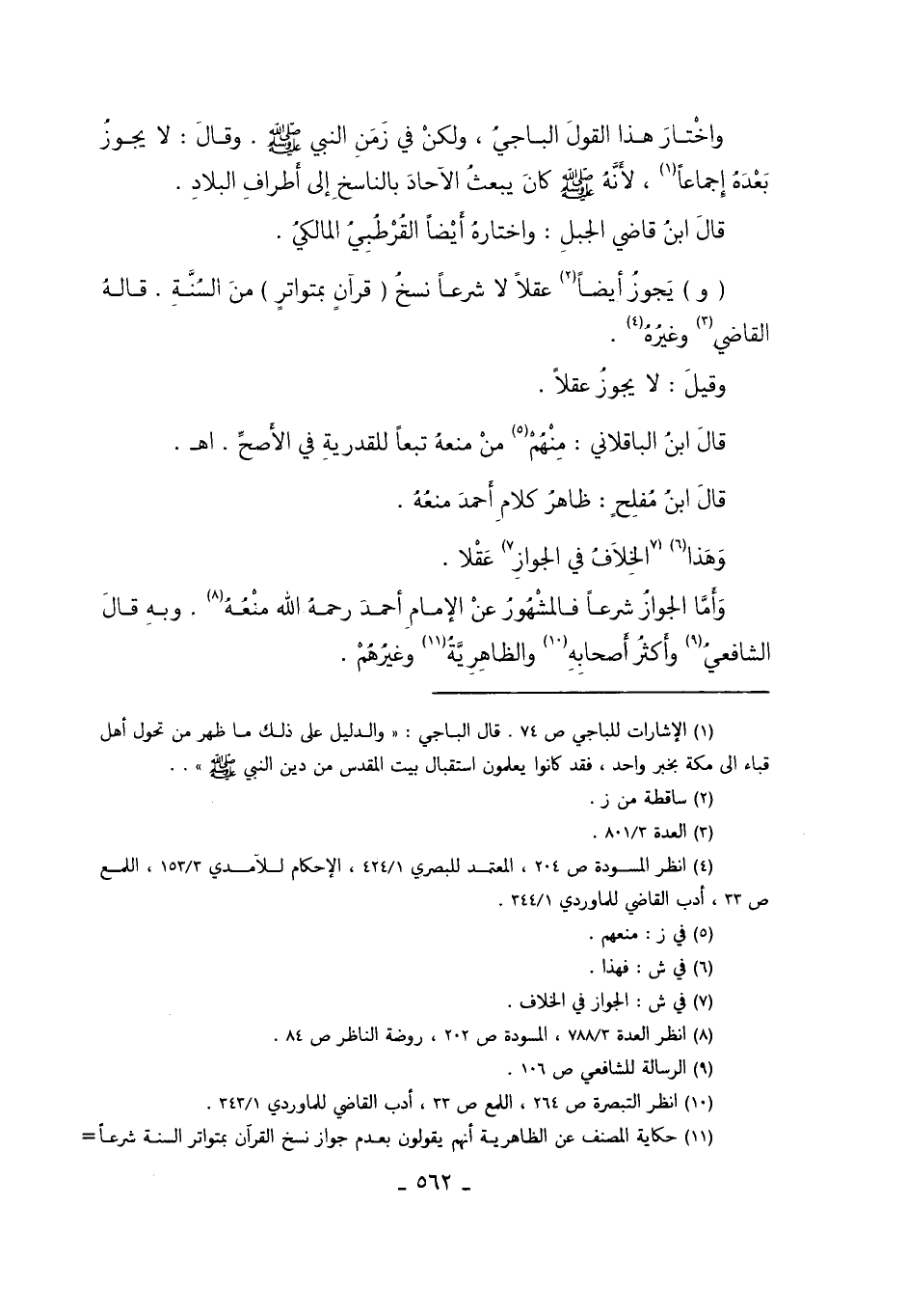 1 الإشارات للباجي ص74، قال الباجي: "والدليل على ذلك ما ظهر من تحول أهل قباء إلى مكة بخبر واحد، فقد كانوا يعلمون استقبال بيت المقدس من دين النبي صلى الله عليه وسلم".
