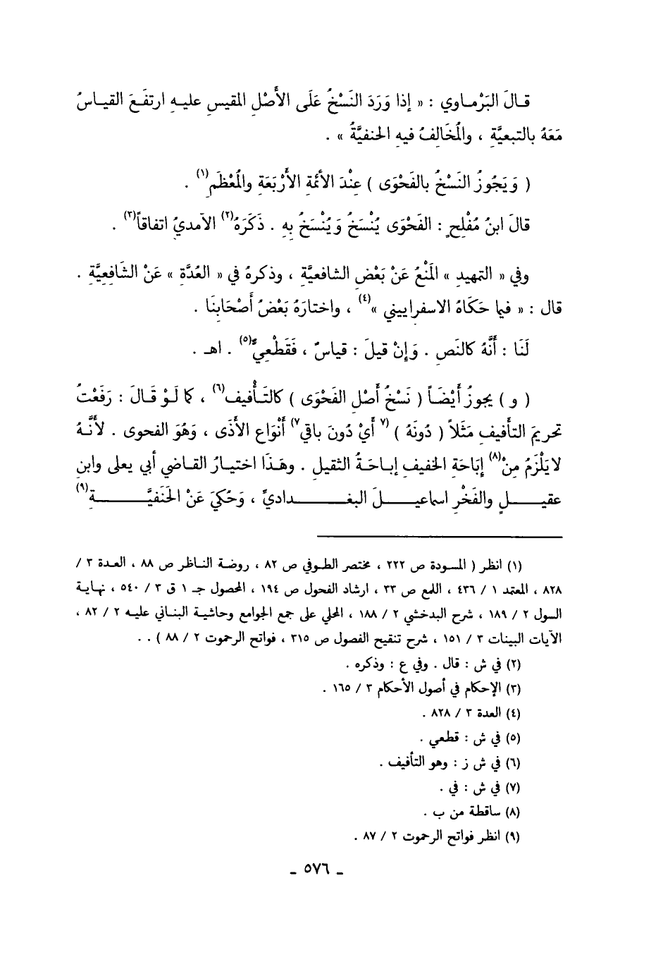 "وَيَجُوزُ النَّسْخُ بِالْفَحْوَى" عِنْدَ الأَئِمَّةِ الأَرْبَعَةِ وَالْمُعْظَمِ1.