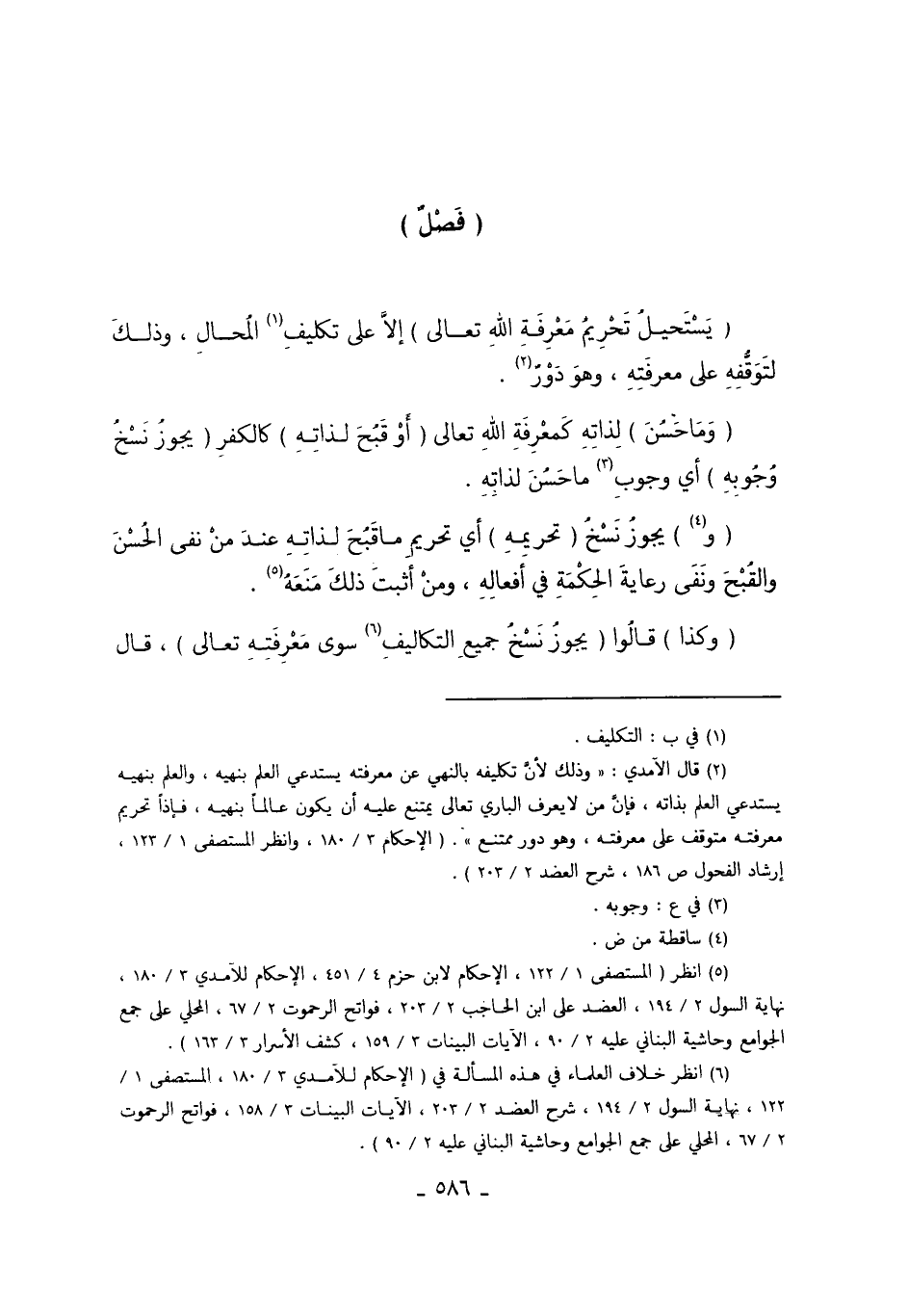 2 قال الآمدي: "وذلك لأن تكليفه بالنهي عن معرفته يستدعي العلم بنهيه، والعلم بنهيه يستدعي العلم بذاته، فإن من لا يعرف الباري تعالى يمتنع عليه أن يكون عالماً بنهيه، فإذاّ تحريم معرفته متوقف على معرفته، وهو دور ممتنع". "الإحكام 3/180، وانظر المستصفى 1/123، إرشادص186، شرح العضد 2/203".