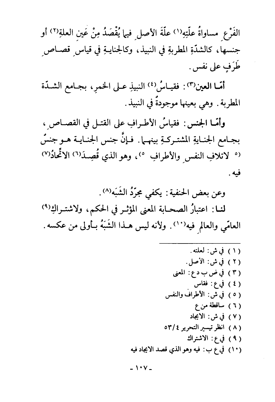 أَمَّا الْعَيْنُ3: فَقِيَاسُ4 النَّبِيذِعَلَى الْخَمْرِ، بِجَامِعِ الشِّدَّةِ الْمُطْرِبَةِ، وَهِيَ بِعَيْنِهَا مَوْجُودَةٌ فِي النَّبِيذِ.