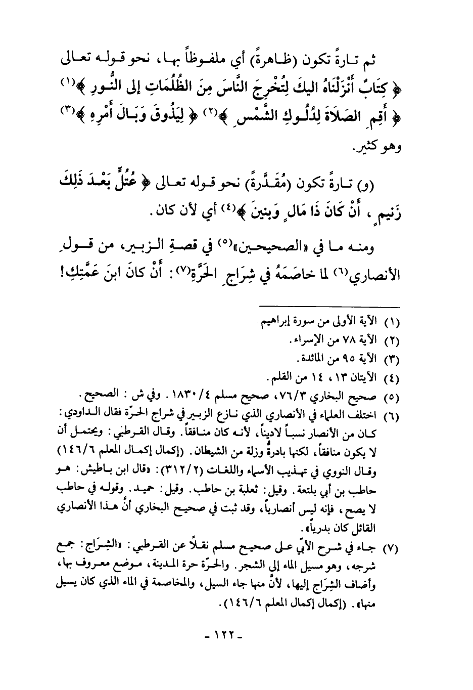 7 جاء في شرح الأبي على صحيح مسلم نقلاً عن القرطبي: "الشِراج: جمع شرجة، وهو مسيل الماء إلى الشجر. والحرّة حرة المدينة، موضع معروف بها، وأضاف الشِرَاج إليها، لأن منها جاء السيل، والمخاصمة في الماء الذي كان يسيل منها". "إكمال إكمال المعلم 6/146".