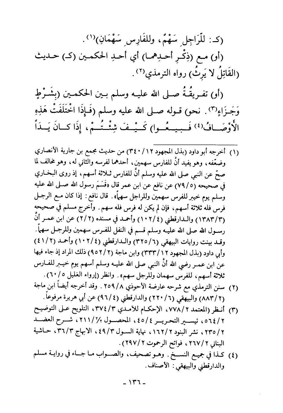 "كَـ: "لِلرَّاجِلِ سَهْمٌ وَلِلْفَارِسِ سَهْمَانِ1".