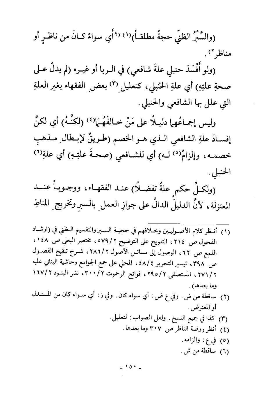 1 أنظر كلام الأصوليين وخلافهم في حجية السبر والتقسيم الطني في "ارشاد الفحول ص 214، التلويح على التوضيح 2/579، مختصر البعلي ص 148، اللمع ص 62، الوصول إلى مسائل الأصول 2/286، شرح تنقيح الفصول ص 398، تيسير التحرير 4/48، المحلي على جمع الجوامع وحاشية البناني عليه 2/271، المستصفى 2/295، فواتح الرحموت 2/300، نشر البنود 2/167 وما بعدها".
