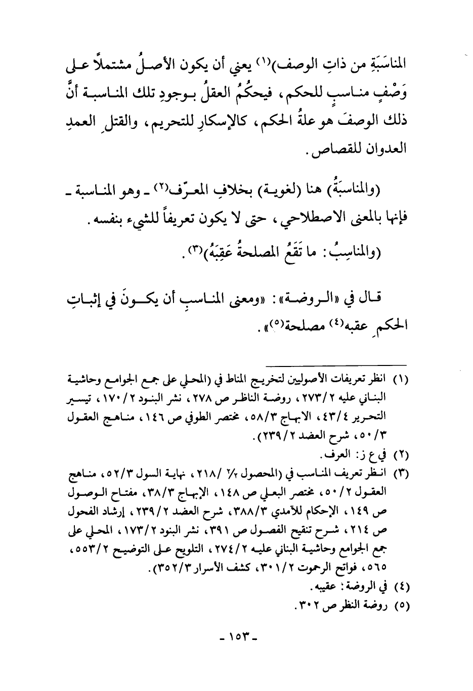 3 انظر تعريف المناسب في "المحصول 2/2/218، نهاية السول 3/52، مناهج العقول 2/50، مختصر البعلي ص 148، الإبهاج 3/38، مفتاح الوصول ص 149، الإحكام للآمدي 3/388، شرح العضد 2/239، إرشاد الفحول ص 214، شرح تنقيح الفصول ص 391، نشر البنود 2/173، المحلي على جمع الجوامع وحاشية البناني عليه 2/274، التلويح على التوضيح 2/553، 565، فواتح الرحموت 2/301، كشف الأسرار 3/352".