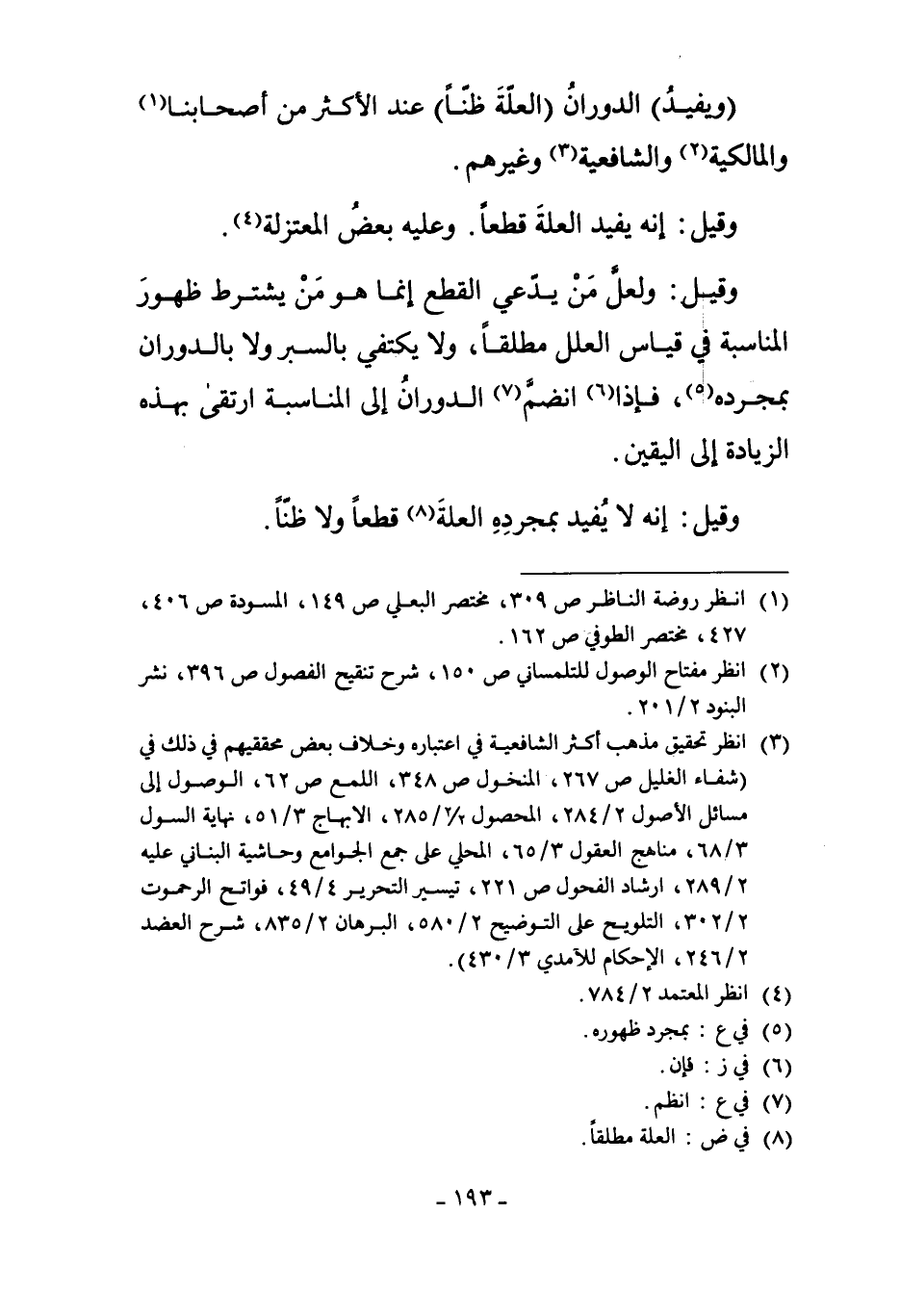 "وَيُفِيدُ" الدَّوَرَانُ "الْعِلَّةَ ظَنًّا" عِنْدَ الأَكْثَرِ مِنْ أَصْحَابِنَا1، وَالْمَالِكِيَّةِ2 وَالشَّافِعِيَّةِ3 وَغَيْرِهِمْ.