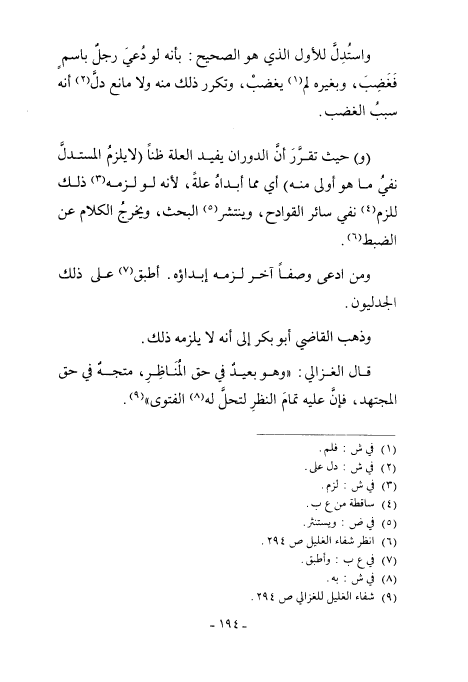 قَالَ الْغَزَالِيُّ: وَهُوَ بَعِيدٌ فِي حَقِّ الْمُنَاظِرِ، مُتَّجَهٌ فِي حَقِّ الْمُجْتَهِدِ، فَإِنَّ عَلَيْهِ تَمَامَ النَّظَرِ؛ لِتَحِلَّ لَهُ8 الْفَتْوَى9.