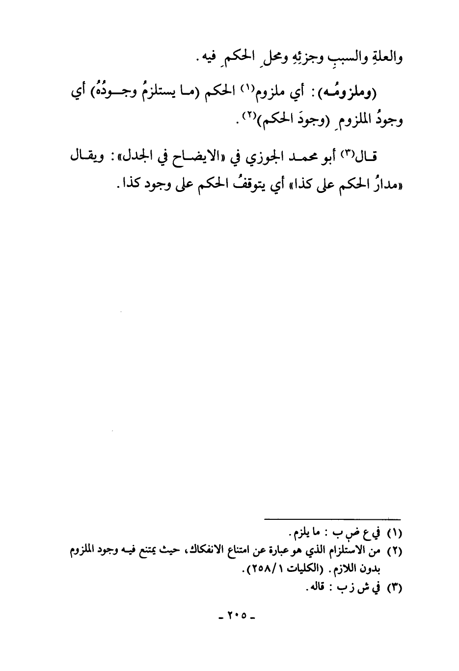 2 من الاستلزام الذي هو عبارة عن امتناع الانفكاك، حيث يمتنع فيه وجود الملزوم بدون اللازم. " الكليات 1/258".