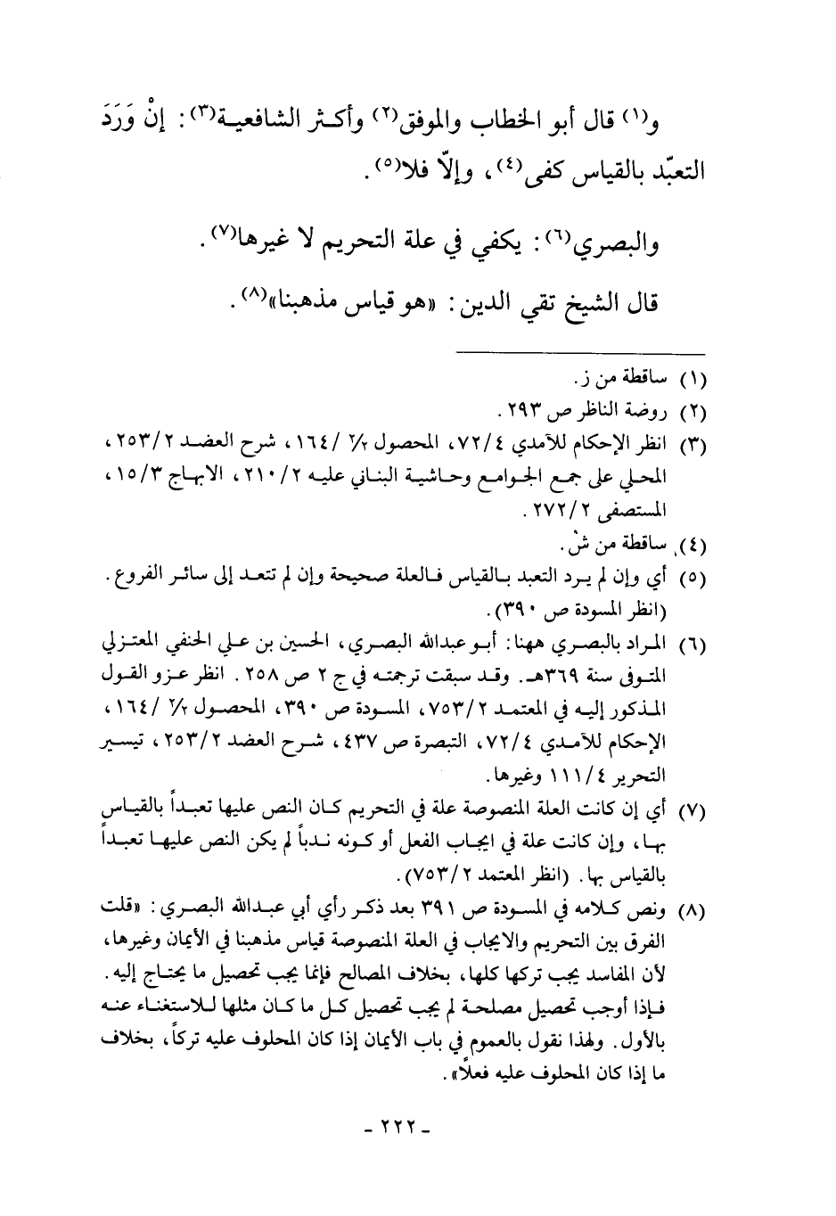 6 المراد بالبصري ههنا: أبو عبد الله البصري، الحسين بن علي الحنفي المعتزلي المتوفى سنة 369 هـ. وقد سبقت ترجمته في ج 2 ص 258. انظر عزو القول المذكور إليه في المعتمد 2/753، المسودة ص 390، المحصول 2/2/164، الإحكام للآمدي 4/72، التبصرة ص 437، شرح العضد 2/253، تيسير التحرير 4/111 وغيرها.