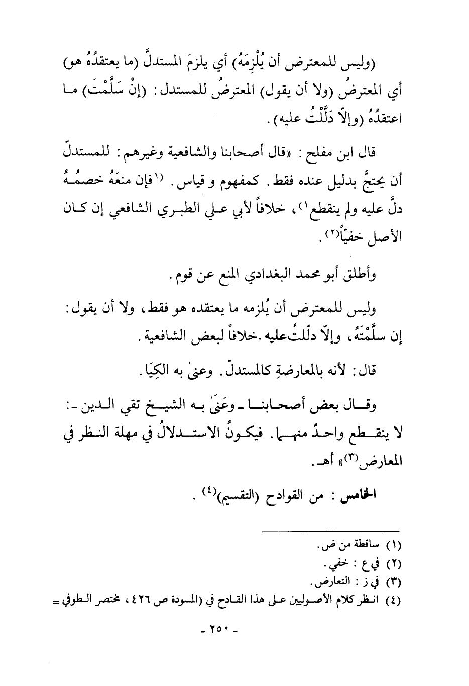 4 انظر كلام الأصوليين على هذا القادح في "المسودة ص 426، مختصر الطوفي =