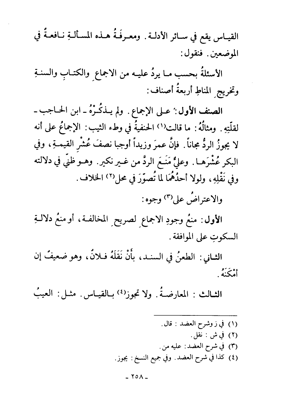 الأَسْئِلَةُ بِحَسَبِ مَا يَرِدُ عَلَيْهِ مِنْ الإِجْمَاعِ وَالْكِتَابِ وَالسُّنَّةِ. وَتَخْرِيجُ الْمَنَاطِ: أَرْبَعَةُ أَصْنَافٍ: