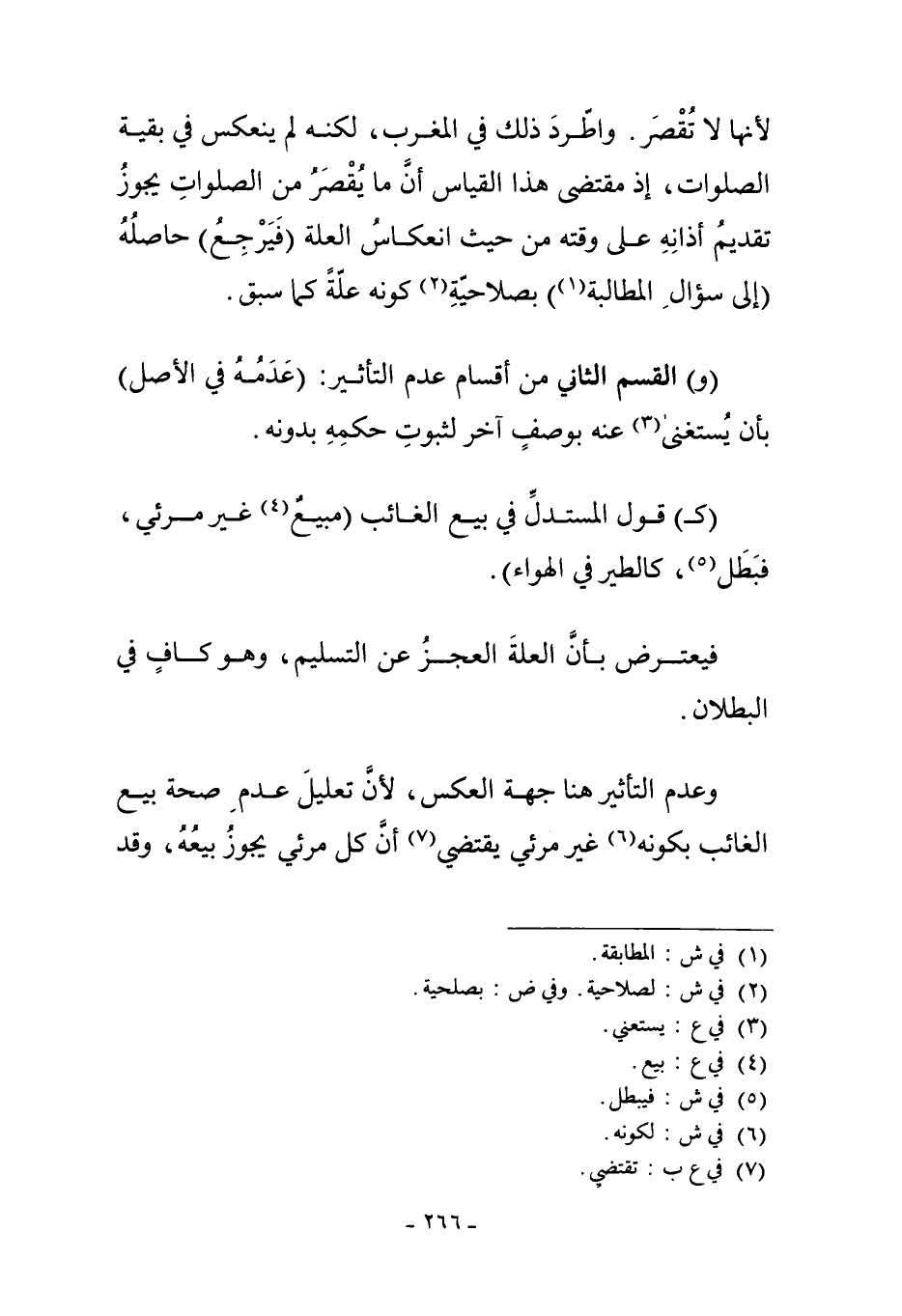 وَعَدَمُ التَّأْثِيرِ هُنَا: جِهَةُ الْعَكْسِ؛ لأَنَّ تَعْلِيلَ عَدَمِ صِحَّةِ بَيْعِ الْغَائِبِ؛ بِكَوْنِهِ6 غَيْرَ مَرْئِيٍّ يَقْتَضِي7 أَنَّ كُلَّ مَرْئِيٍّ يَجُوزُ بَيْعُهُ. وَقَدْ