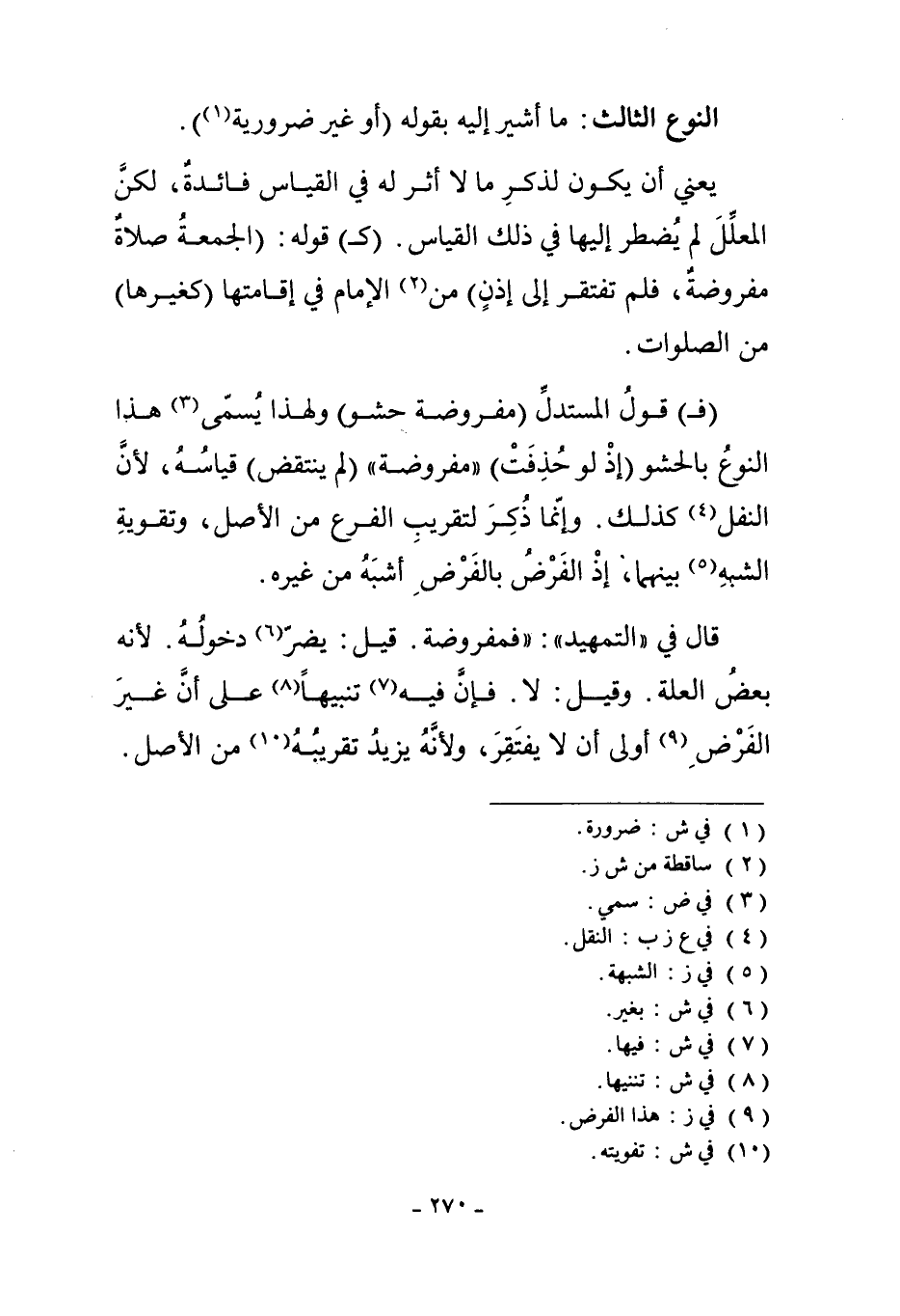 "فَـ" قَوْلُ الْمُسْتَدِلِّ "مَفْرُوضَةٌ: حَشْوٌ" وَلِهَذَا يُسَمَّى3 هَذَا النَّوْعُ بِالْحَشْوِ "إذْ لَوْ حُذِفَتْ" "مَفْرُوضَةٌ" "لَمْ يَنْتَقِضْ" قِيَاسُهُ؛ لأَنَّ النَّفَلَ4 كَذَلِكَ، وَإِنَّمَا ذُكِرَ لِتَقْرِيبِ الْفَرْعِ مِنْ الأَصْلِ، وَتَقْوِيَةِ الشَّبَهِ5 بَيْنَهُمَا إذْ الْفَرْضُ بِالْفَرْضِ أَشْبَهُ مِنْ غَيْرِهِ.