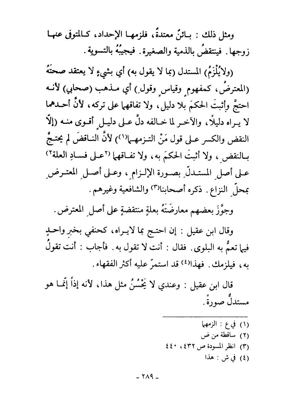 وَقَالَ ابْنُ عَقِيلٍ: إنْ احْتَجَّ بِمَا لا يَرَاهُ، كَحَنَفِيٍّ بِخَبَرٍ وَاحِدٍ فِيمَا تَعُمُّ بِهِ الْبَلْوَى. فَقَالَ: أَنْتَ لا تَقُولُ بِهِ، فَأَجَابَ: أَنْتَ تَقُولُ بِهِ، فَيَلْزَمُك. فَهَذَا4 قَدْ اسْتَمَرَّ عَلَيْهِ أَكْثَرُ الْفُقَهَاءِ.