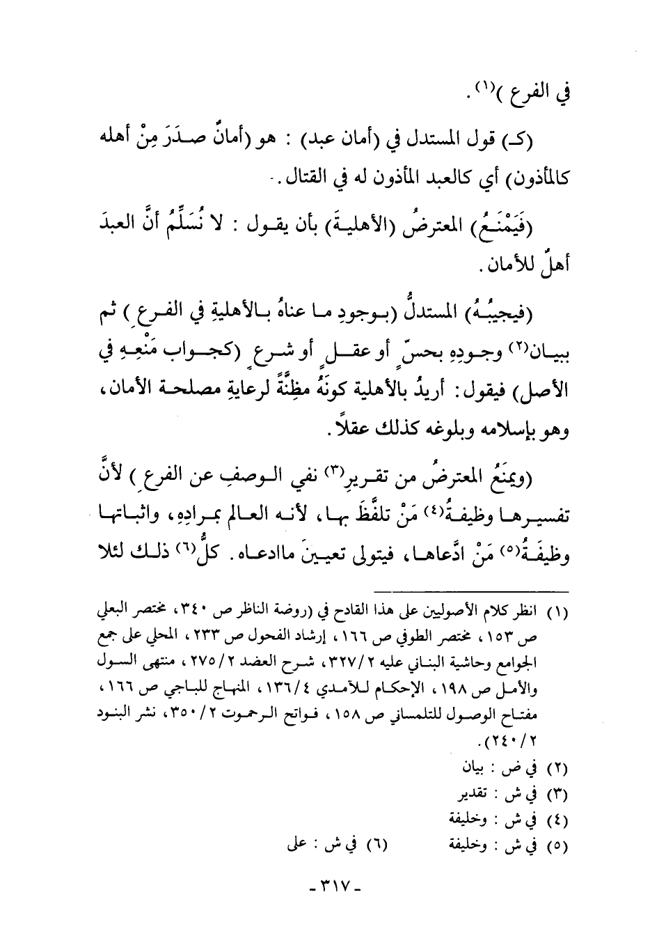 "فَيُجِيبُهُ" الْمُسْتَدِلُّ "بِوُجُودِ مَا عَنَاهُ بِالأَهْلِيَّةِ فِي الْفَرْعِ" ثُمَّ بِبَيَانِ2 وُجُودِهِ بِحِسٍّ أَوْ عَقْلٍ أَوْ شَرْعٍ "كَجَوَابِ مَنْعِهِ فِي الأَصْلِ" فَيَقُولُ: أُرِيدُ بِالأَهْلِيَّةِ كَوْنَهُ مَظِنَّةً لِرِعَايَةِ مَصْلَحَةِ الأَمَانِ، وَهُوَ بِإِسْلامِهِ وَبُلُوغِهِ كَذَلِكَ عَقْلاً.