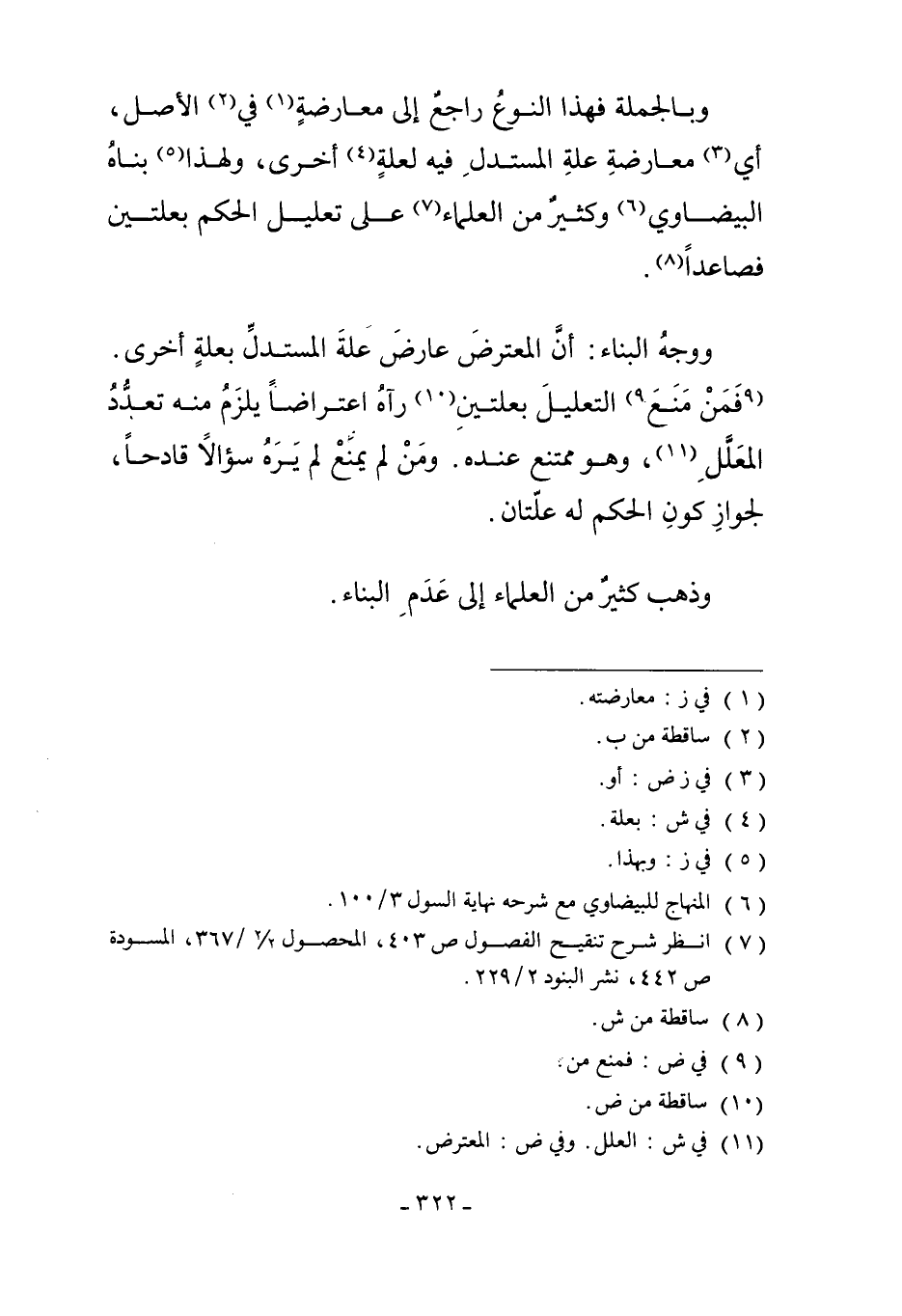 وَوَجْهُ الْبِنَاءِ: أَنَّ الْمُعْتَرِضَ عَارَضَ عِلَّةَ الْمُسْتَدِلِّ بِعِلَّةٍ أُخْرَى. فَمَنْ مَنَعَ9 التَّعْلِيلَ بِعِلَّتَيْنِ10 رَآهُ اعْتِرَاضًا يَلْزَمُ مِنْهُ تَعَدُّدُ الْمُعَلَّلِ11.