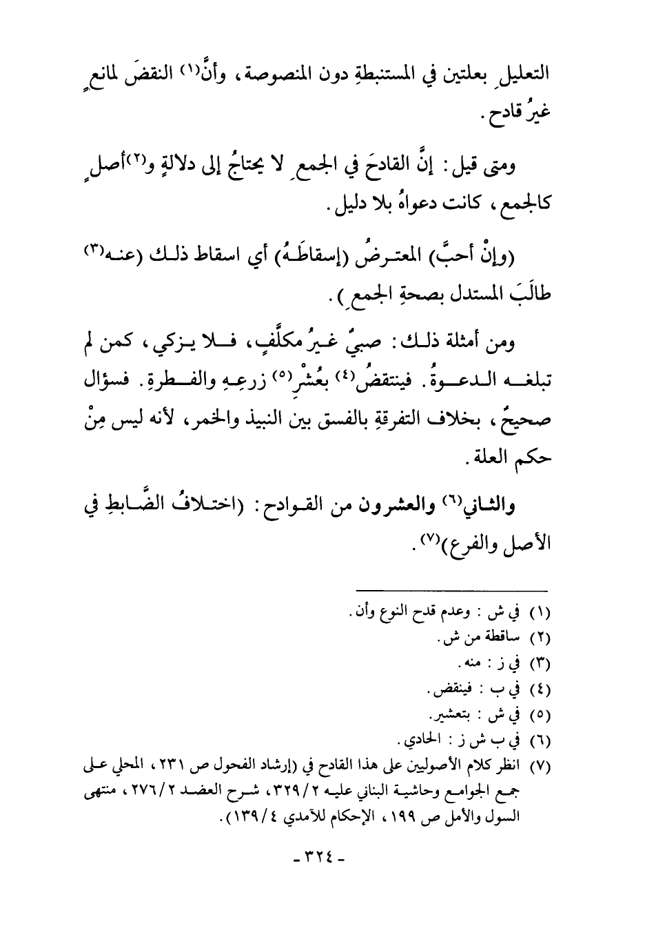7 انظر كلام الأصوليين على هذا القادح في "إرشاد الفحول ص 231، المحلي على جمع الجوامع وحاشية البناني عليه 2/329، شرح العضد 2/276، منتهى السول والأمل ص 199، الإحكام للآمدي 4/139".