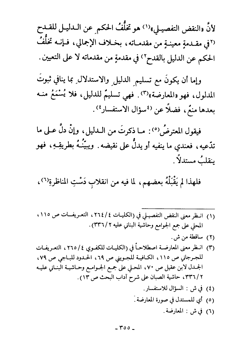 1 انظر معنى النقض التفصيلي في "الكليات 4/264، التعريفات ص 115، المحلي على جمع الجوامع وحاشية البناني عليه 2/336".