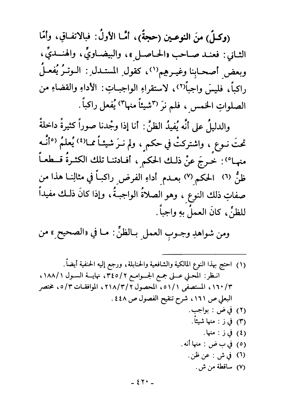 وَالدَّلِيلُ عَلَى أَنَّهُ يُفِيدُ الظَّنَّ: أَنَّا إذَا وَجَدْنَا صُوَرًا كَثِيرَةً دَاخِلَةً تَحْتَ نَوْعٍ، وَاشْتَرَكَتْ فِي حُكْمٍ، وَلَمْ نَرَ شَيْئًا مِمَّا4 يُعْلَمُ أَنَّهُ مِنْهَا5: خَرَجَ عَنْ ذَلِكَ الْحُكْمِ، أَفَادَتْنَا تِلْكَ الْكَثْرَةُ قَطْعًا عَنْ ظَنِّ6 الْحُكْمِ7 بِعَدَمِ أَدَاءِ الْفَرْضِ رَاكِبًا فِي مِثَالِنَا هَذَا مِنْ صِفَاتِ ذَلِكَ النَّوْعِ، وَهُوَ الصَّلاةُ الْوَاجِبَةُ، وَإِذَا كَانَ ذَلِكَ مُفِيدًا لِلظَّنِّ، كَانَ الْعَمَلُ بِهِ وَاجِبًا.