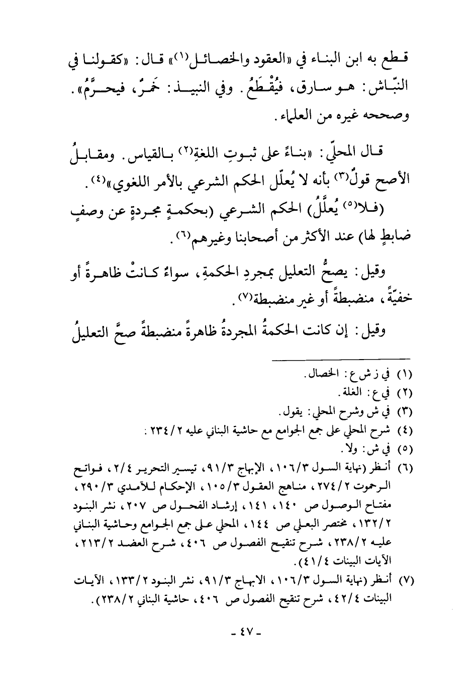 7 انظر "نهاية السول 3/106، الإبهاج 3/91، نشر البنود 2/133، الآيات البينات 4/42، شرح تنقيح الفصول ص 406، حاشية البناني 2/238".