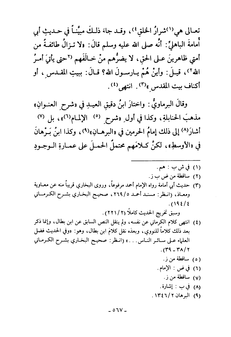 3 حديث أبي أمامة رواه الإمام أحمد مرفوعاً، وروى البخاري قريباً منه عن معاوية ومعاذ، "انظر: مسند أحمد 5/269، صحيح البخاري بشرح الكرماني 4/194".
