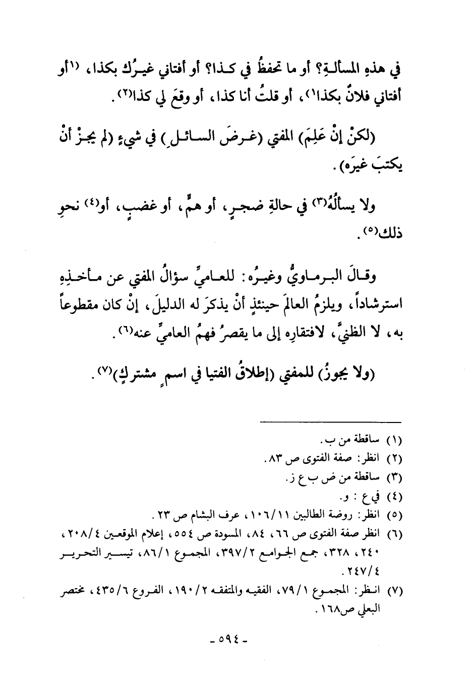 6 انظر صفة الفتوى ص 66، 84، المسودة ص 554، إعلام الموقعين 4/208، 240، 328، جمع الجوامع 2/397، المجموع 1/86، تيسير التحرير 4/247.
