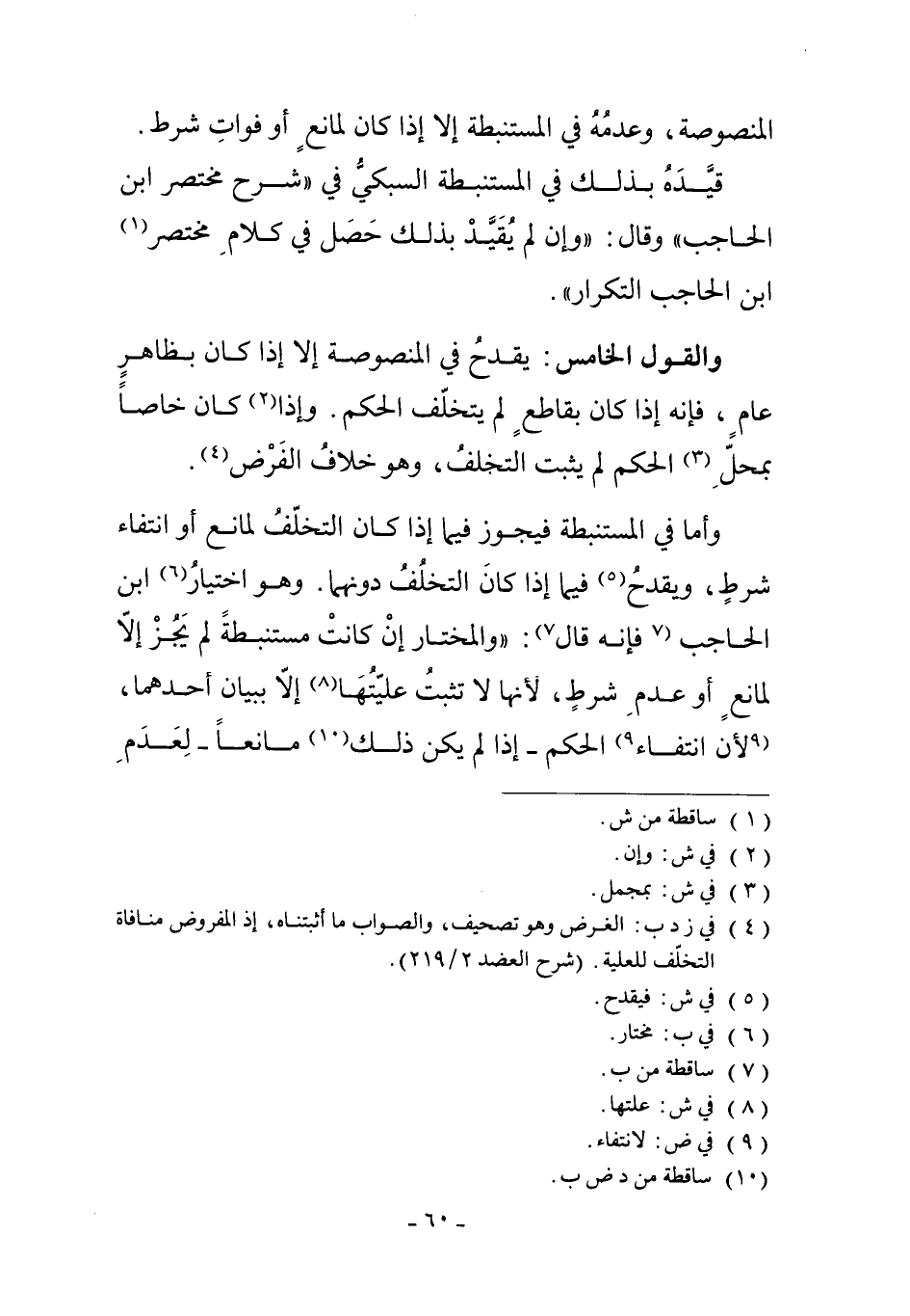 الْمَنْصُوصَةِ وَعَدَمُهُ فِي الْمُسْتَنْبَطَةِ، إلاَّ إذَا كَانَ لِمَانِعٍ أَوْ فَوَاتِ شَرْطٍ.