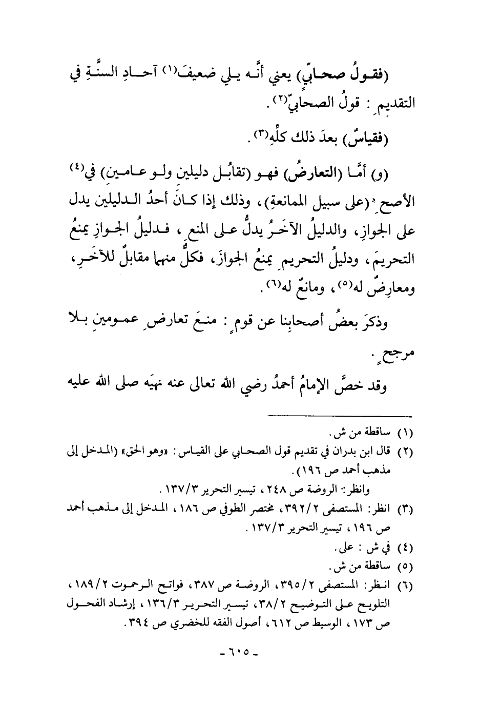 6 انظر: المستصفى 2/395، الروضة ص 387، فواتح الرحموت 2/189، التلويح على التوضيح 2/38، الوسيط ص 612، أصول الفقه للخضري ص 394.