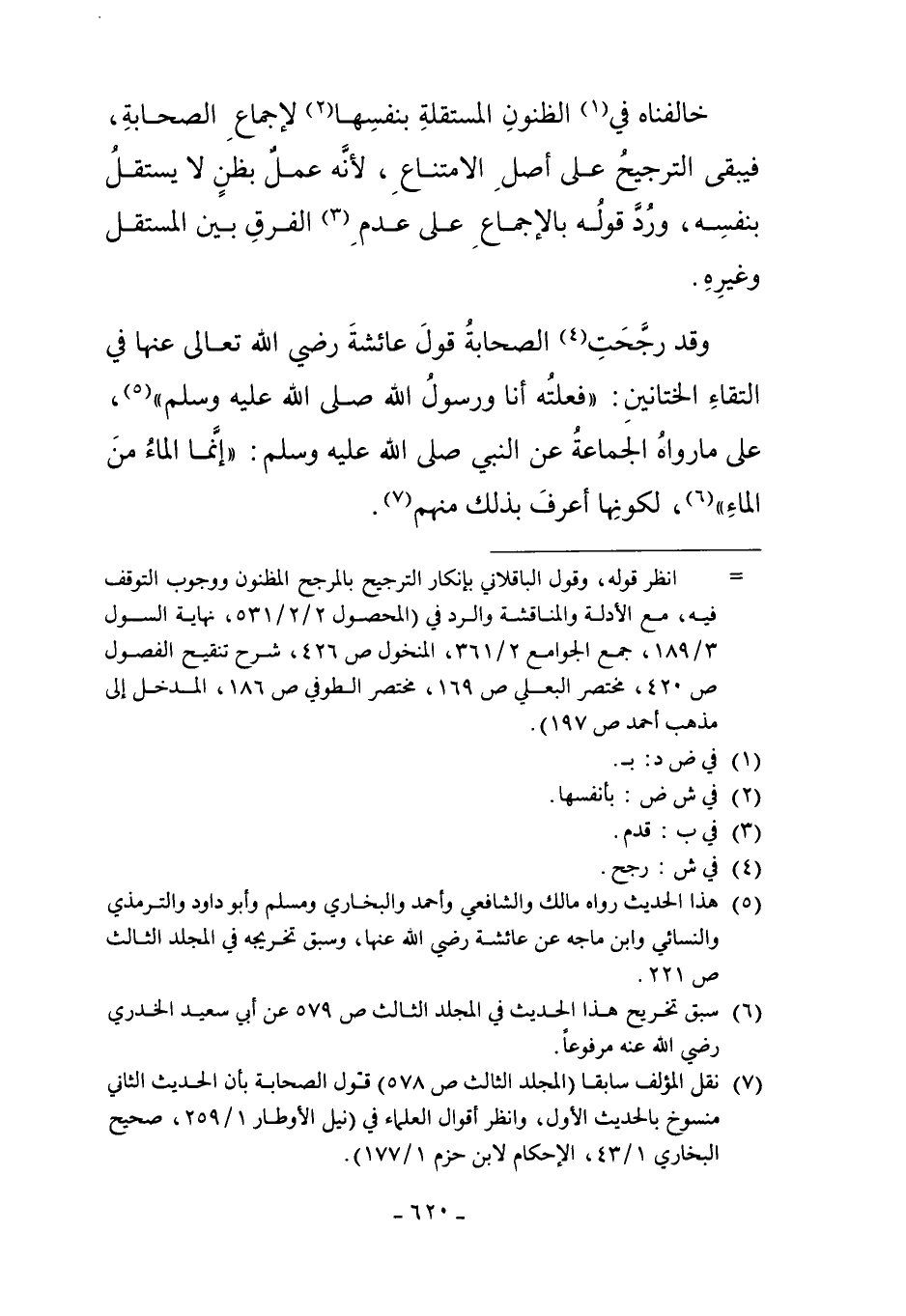 7 نقل المؤلف سابقاً "المجلد الثالث ص 578" قول الصحابة بأن الحديث الثاني منسوخ بالحديث الأول، وانظر أقوال العلماء في "نيل الأوطار 1/259، صحيح البخاري 1/43، الإحكام لابن حزم 1/177".
