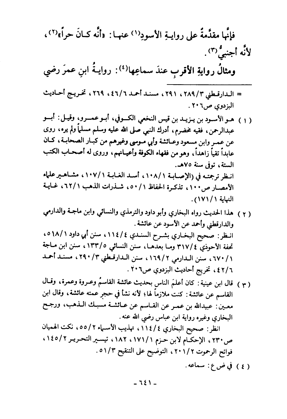 2 هذا الحديث رواه البخاري وأبو داود والترمذي والنسائي وابن ماجه والدارمي والدارقطني وأحمد عن الأسود عن عائشة.