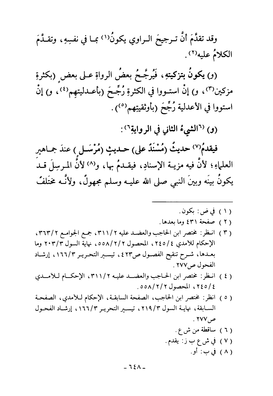 وَقَدْ تَقَدَّمَ أَنَّ تَرْجِيحَ الرَّاوِي يَكُونُ1 بِمَا فِي نَفْسِهِ، وَتَقَدَّمَ الْكَلامُ عَلَيْهِ2.
