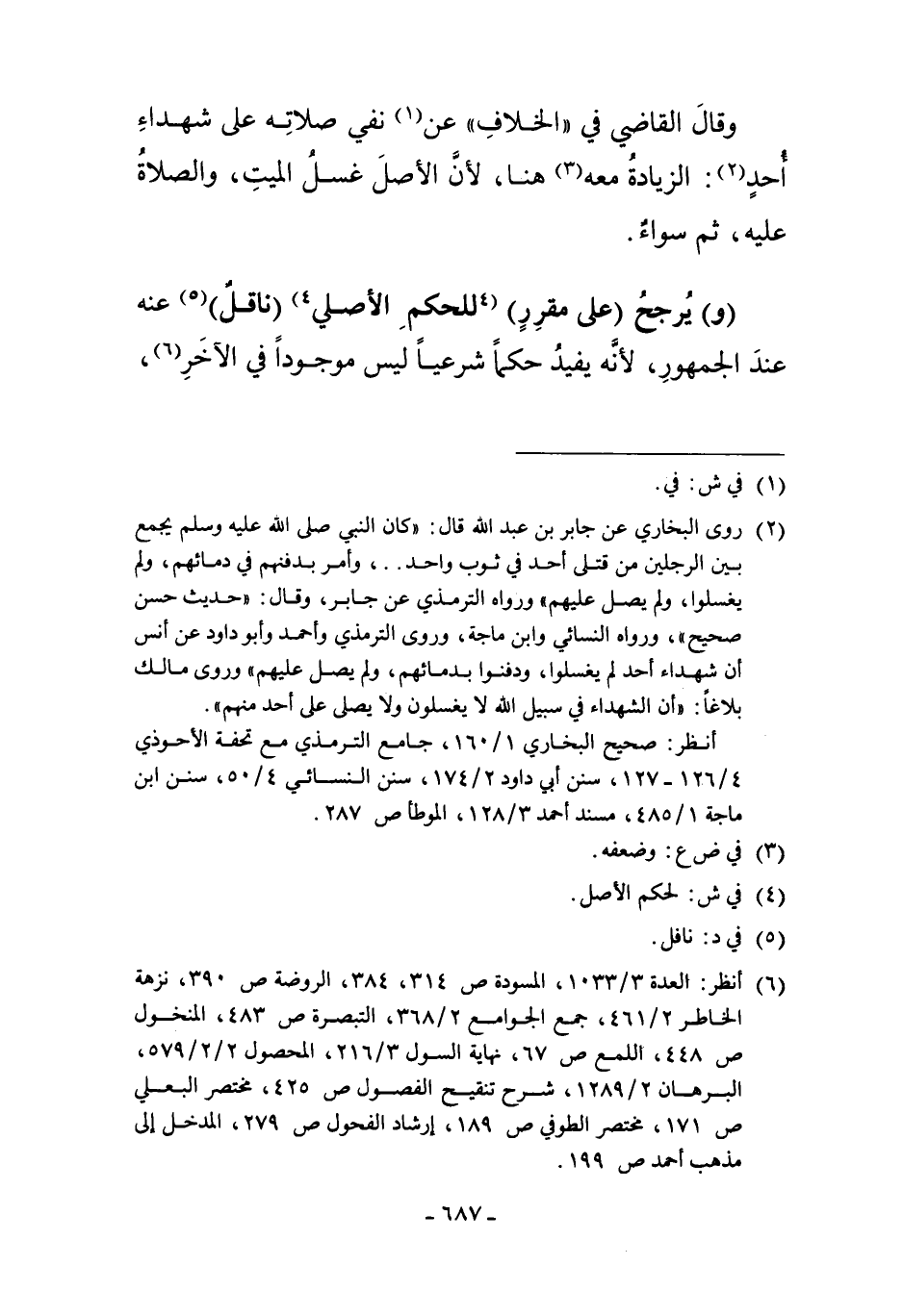 وَقَالَ الْقَاضِي فِي الْخِلافِ عَنْ1 نَفْيِ صَلاتِهِ عَلَى شُهَدَاءِ أُحُدٍ2: الزِّيَادَةُ مَعَهُ3 هُنَا؛ لأَنَّ الأَصْلَ غُسْلُ الْمَيِّتِ وَالصَّلاةُ عَلَيْهِ، ثَمَّ سَوَاءٌ.