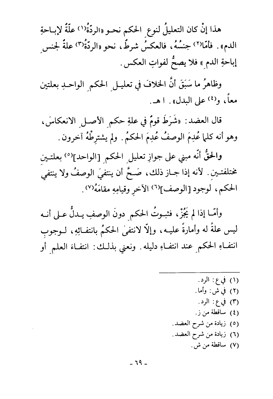 وَظَاهِرُ مَا سَبَقَ: أَنَّ الْخِلافَ فِي تَعْلِيلِ الْحُكْمِ الْوَاحِدِ بِعِلَّتَيْنِ مَعًا، وَ4عَلَى الْبَدَلِ اهـ.