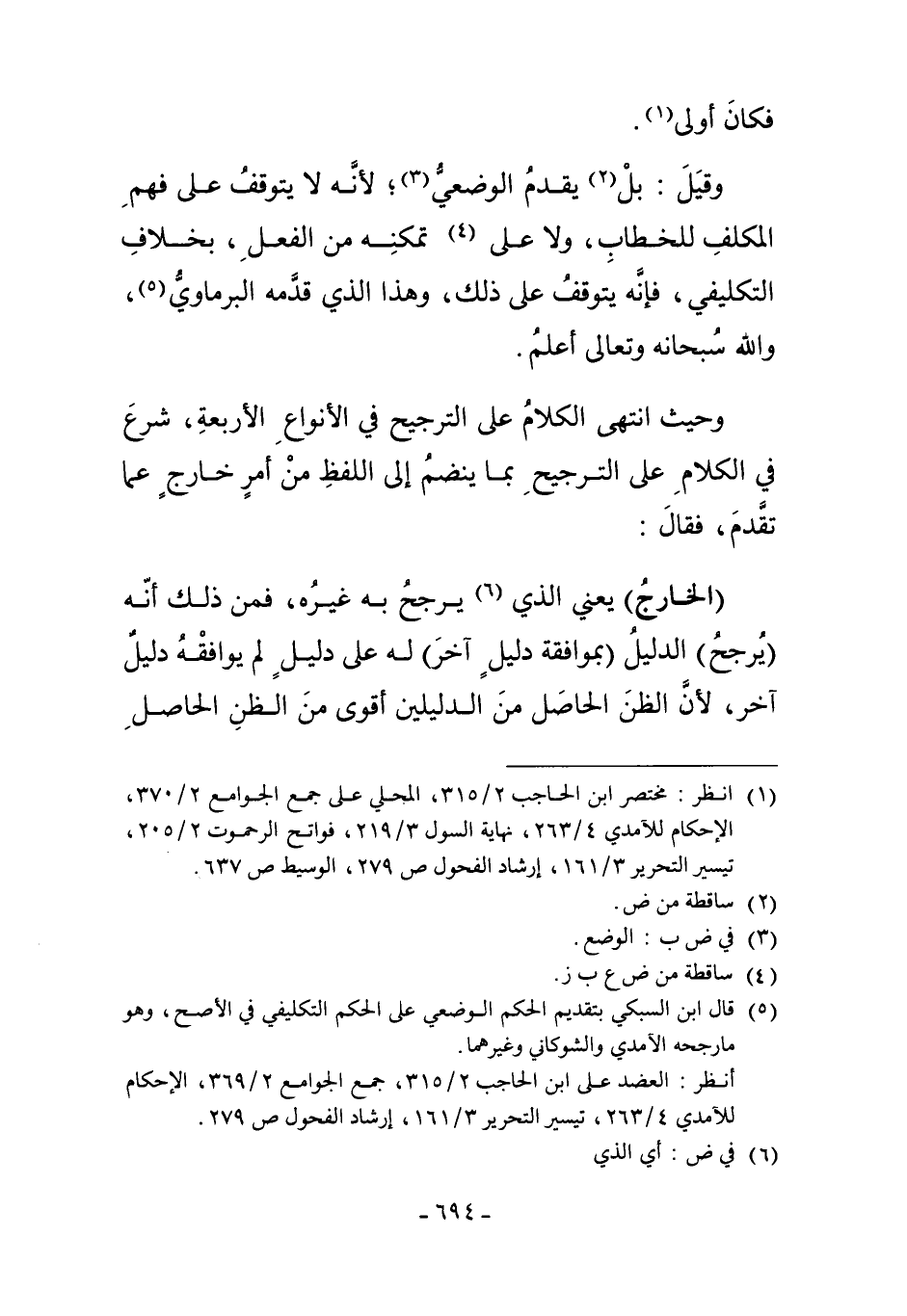 5 قال ابن السبكي بتقديم الحكم الوضعي على الحكم التكليفي في الأصح، وهو ما رجحه الآمدي والشوكاني وغيرهما.