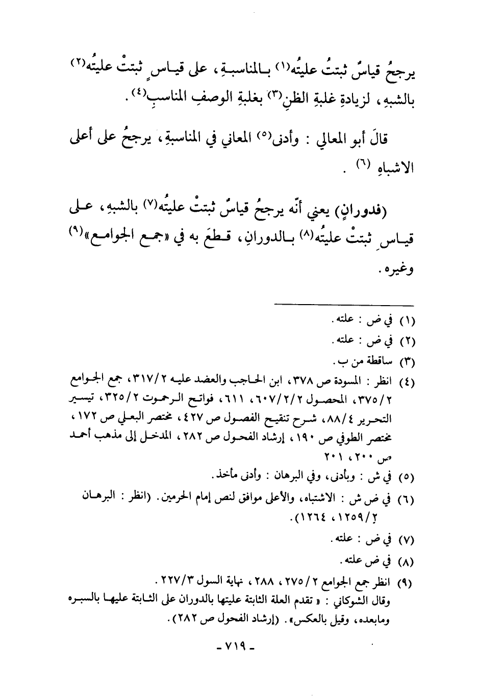 9 انظر جمع الجوامع 2/275، 288، نهاية السول 3/227.