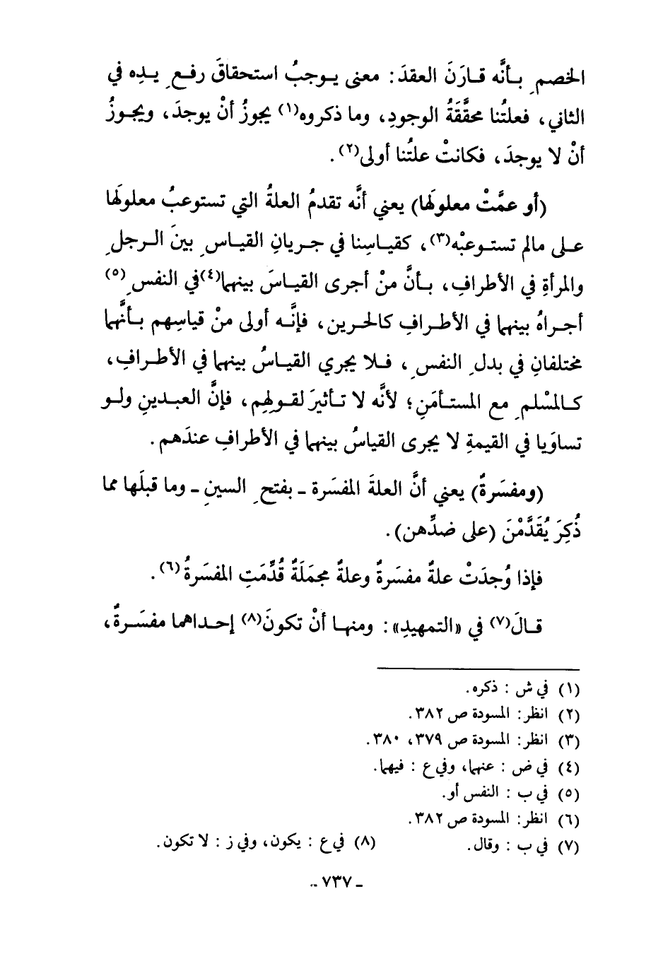 فَإِذَا وُجِدَتْ عِلَّةٌ مُفَسَّرَةٌ، وَعِلَّةٌ مُجْمَلَةٌ قُدِّمَتْ الْمُفَسَّرَةُ6.