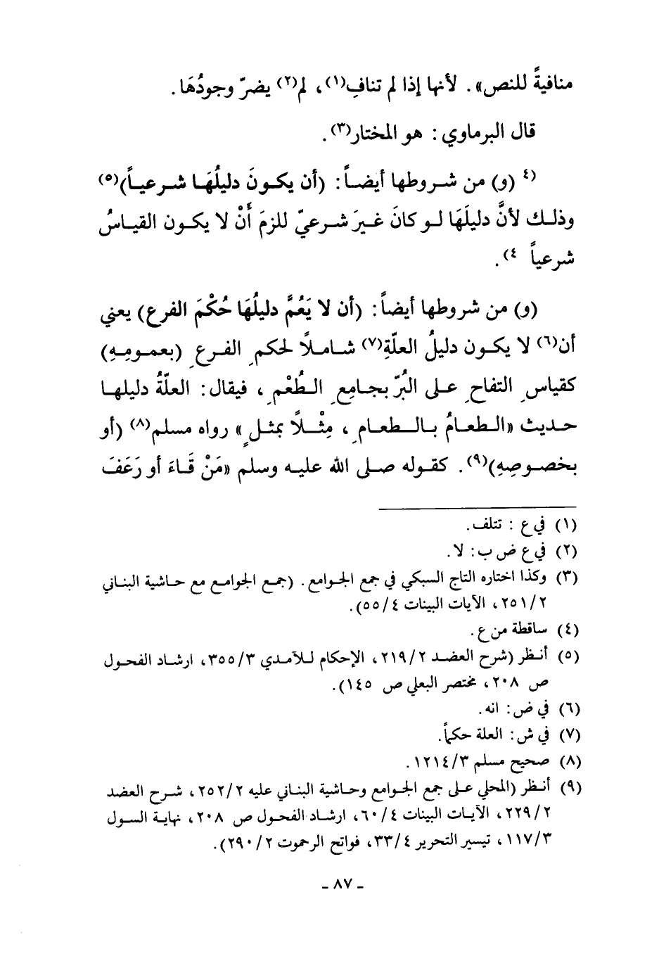 4"وَ" مِنْ شُرُوطِهَا أَيْضًا "أَنْ يَكُونَ دَلِيلُهَا شَرْعِيًّا 5" وَذَلِكَ؛ لأَنَّ دَلِيلَهَا لَوْ كَانَ غَيْرَ شَرْعِيٍّ لَلَزِمَ أَنْ لا يَكُونَ الْقِيَاسُ شَرْعِيًّا.