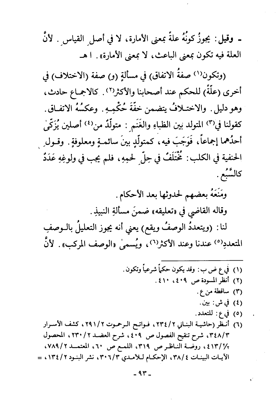 لَنَا "وَيَتَعَدَّدُ الْوَصْفُ وَيَقَعُ" يَعْنِي أَنَّهُ يَجُوزُ التَّعْلِيلُ بِالْوَصْفِ الْمُتَعَدِّدِ 5عِنْدَنَا وَعِنْدَ الأَكْثَرِ6، وَيُسَمَّى الْوَصْفَ الْمُرَكَّبَ؛ لأَنَّ
