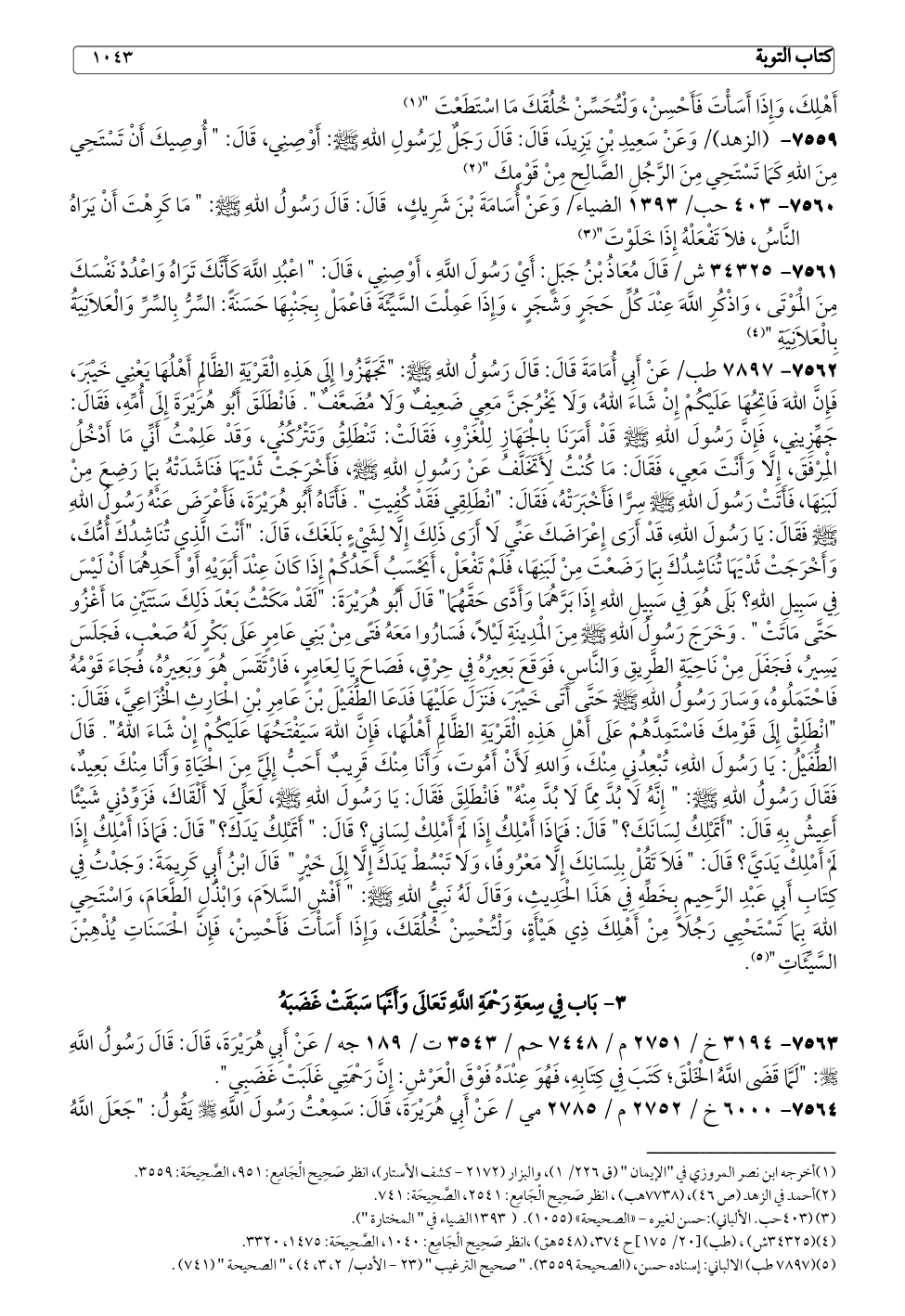 (¬٤) (٣٤٣٢٥ ش)، (طب) [٢٠/ ١٧٥] ح ٣٧٤، (٥٤٨ هق)،انظر صَحِيح الْجَامِع: ١٠٤٠، الصَّحِيحَة: ١٤٧٥، ٣٣٢٠.
